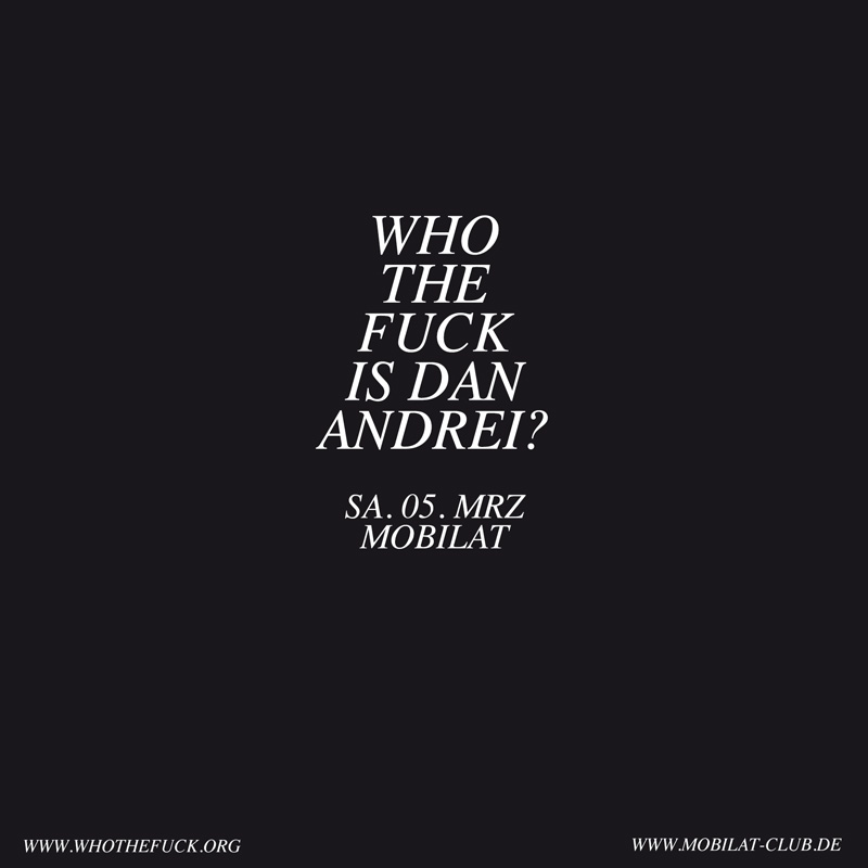 Wer das Internet nach Informationen über Dan Andrei durchforstet, wird wenig Glück haben. Anstatt sich dem Zwang der Social Networks zu ergeben, nutzt er seine Zeit lieber dafür, sein Musikverständnis und seine Produktionsskills zu erweitern. Sehr sympathisch, wie wir finden.