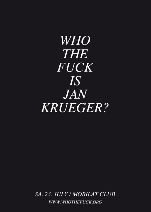 The Bunker / New York, Rex Club / Paris, Robert Johnson / Offenbach, Womb / Tokyo, DEMF / Detroit, Panorama Bar / Berlin, ... die Liste der Orte, an denen Jan Krueger schon hinter den Plattentellern stand ließe sich beliebig mit illustren Namen fortsetzen. Dabei hat er bisher nur eine EP und einen Track veröffentlicht und das ist zum Einen schon Jahre her und zum Anderen kaum jemandem bekannt. Schlussfolgerung: der Mann überzeugt durch DJ-Skills und guten Musikgeschmack. Ein gutes Bild davon erhält man durch die zahlreichen Podcasts, die im Netz umherschwirren und bei Kennern für schnalzende Zungen und nach oben schnellende Augenbrauen sorgen. Ebenso betreibt er zusammen mit Daze Maxim das Label Hello?Repeat, das u.a. Künstlern wie Bruno Pronsato, Audio Werner, Cabanne und Kate Simko eine Heimat bietet. Für euch live und in Farbe am 23.07. im Mobilat Club, Heilbronn.